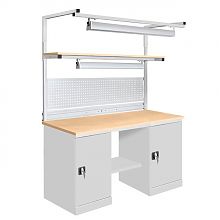 Верстак слесарный это стол для слесарных и столярных работ за которым с помощью инструмента производиться ручная обработка изделий из дерева, металла и других материалов. Верстак имеет устойчивую конструкцию, в качестве опор выступают тумбы металлические ТС-5. Конструкция слесарного верстака с применением дополнительного оборудования позволяет разместить необходимый инструмент, оснастку, материалы и документацию для организации рабочего процесса.