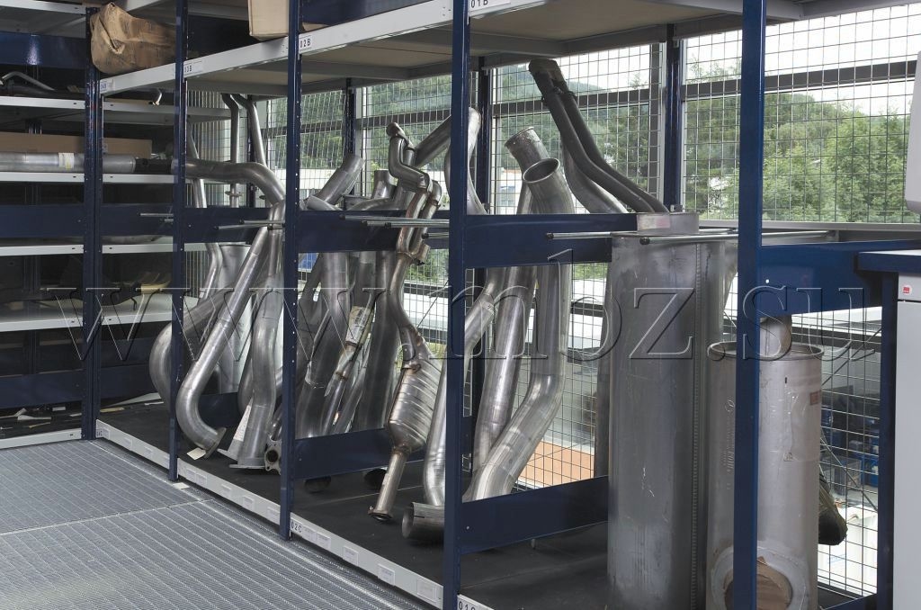 Автосервис оборудованный стеллажами для хранения глушителей